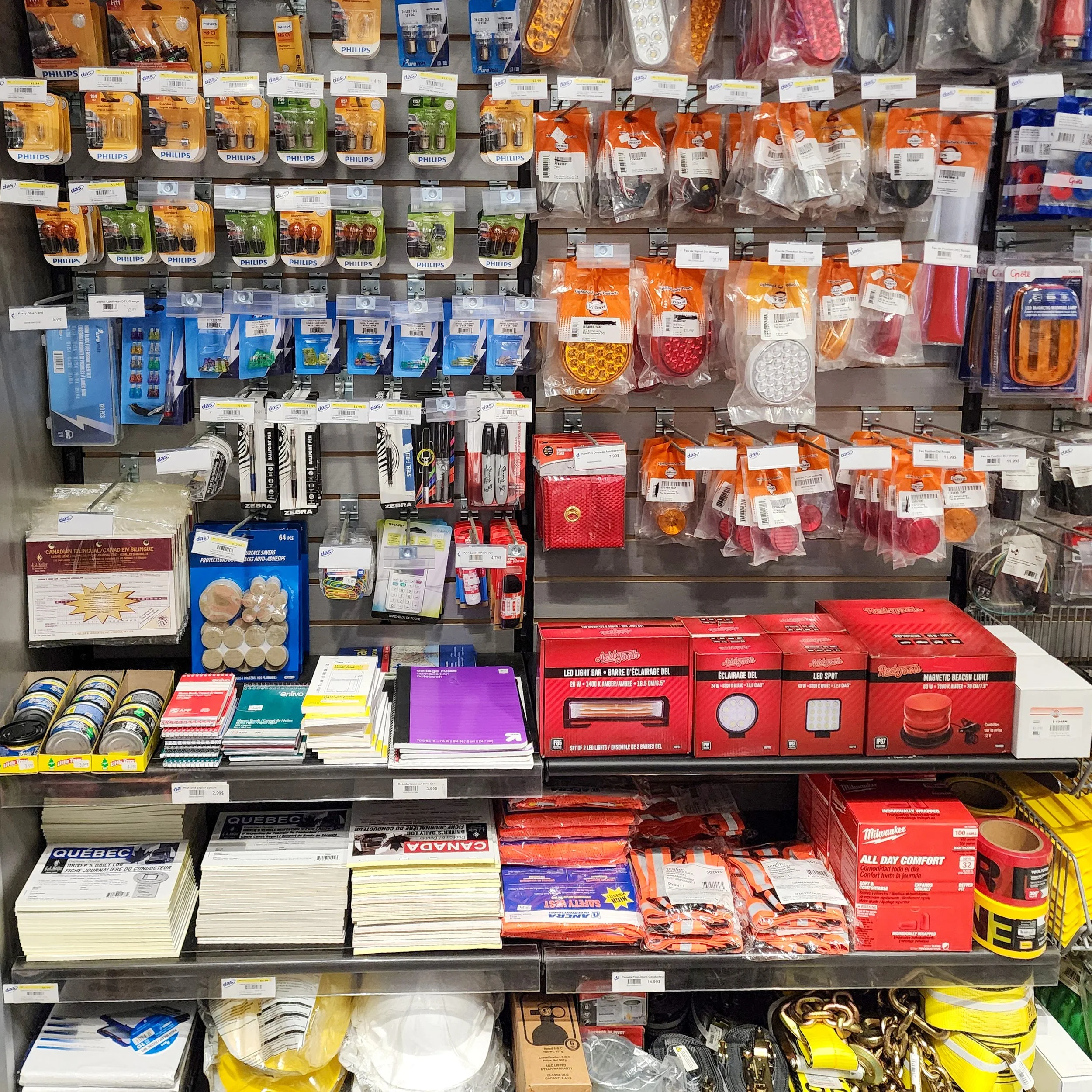 Nous desservons les relais routiers, dépanneurs, concessionnaires de camions et entreprises spécialisées en radiocommunication grâce à une offre complète de produits essentiels : électronique mobile, accessoires pour autos et camions, outils, entretien, sécurité routière, jouets et articles saisonniers.